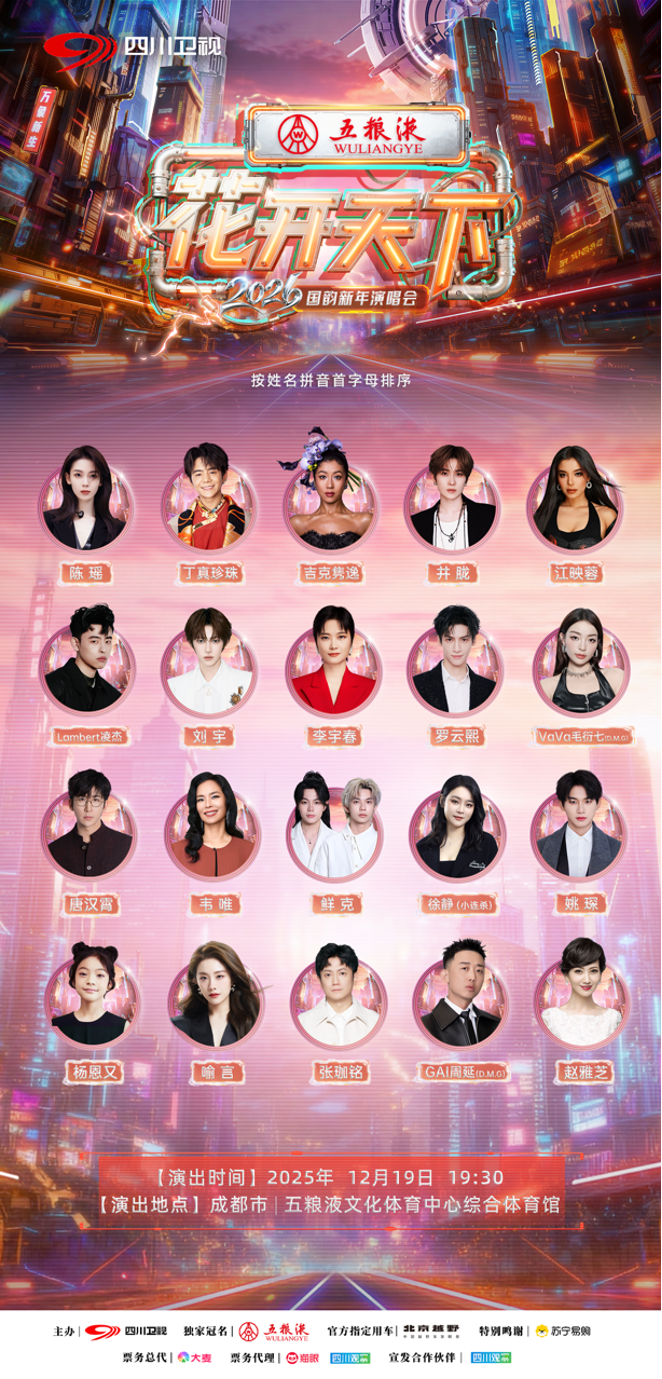 近日,四川卫视重磅官宣,《五粮液2026花开天下·国韵新年演唱会》正式定档于2025年12月19日在成都五粮液文化体育中心综合体育馆盛大举行。演唱会门票已于12月2日在各大票务平台正式开启销售。这场以国漫精神为脉络、传统文化为底蕴的新年盛典,将以其创新的艺术表达和宏大的叙事格局,开启一场穿越古今、连接虚实的新年艺术之旅。